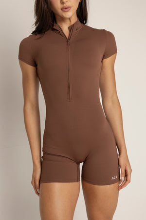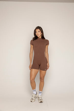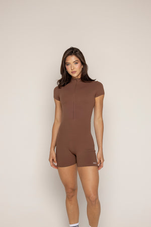 Jumpsuit deportivo de una sola pieza, diseñado para ofrecer ajuste cómodo, soporte y libertad de movimiento. Su cierre frontal funcional y mangas cortas crean una silueta limpia y favorecedora, ideal para entrenar o usar en el día a día.