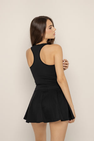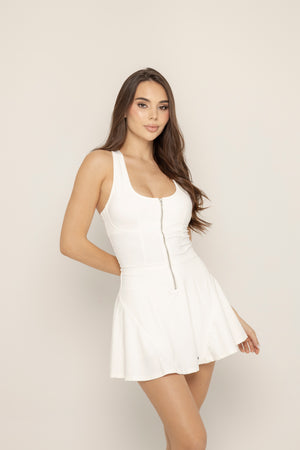 Cuenta con cierre frontal funcional, falda con short interno y un ajuste favorecedor que acompaña el cuerpo sin limitar el movimiento.