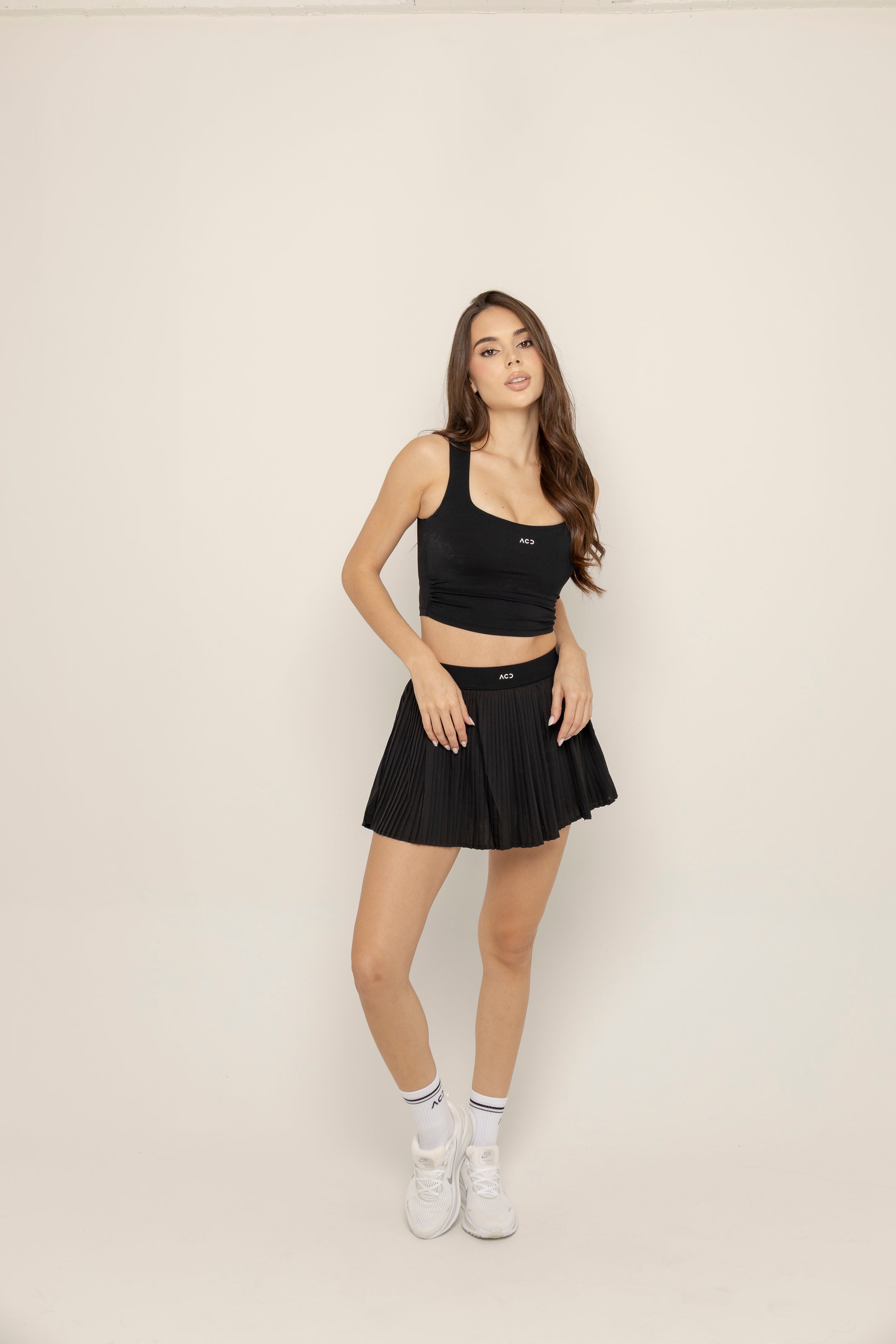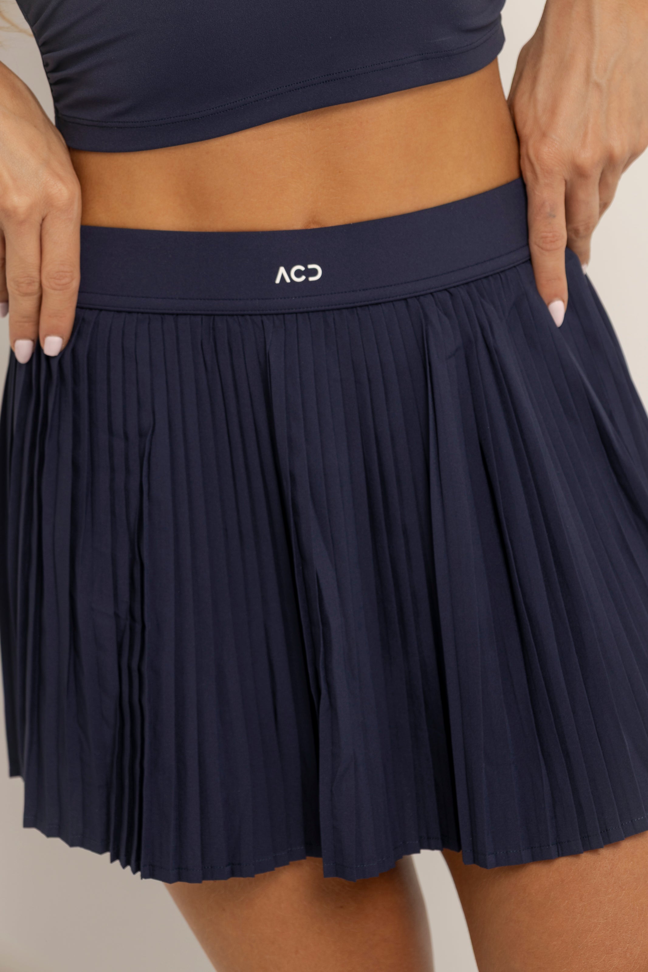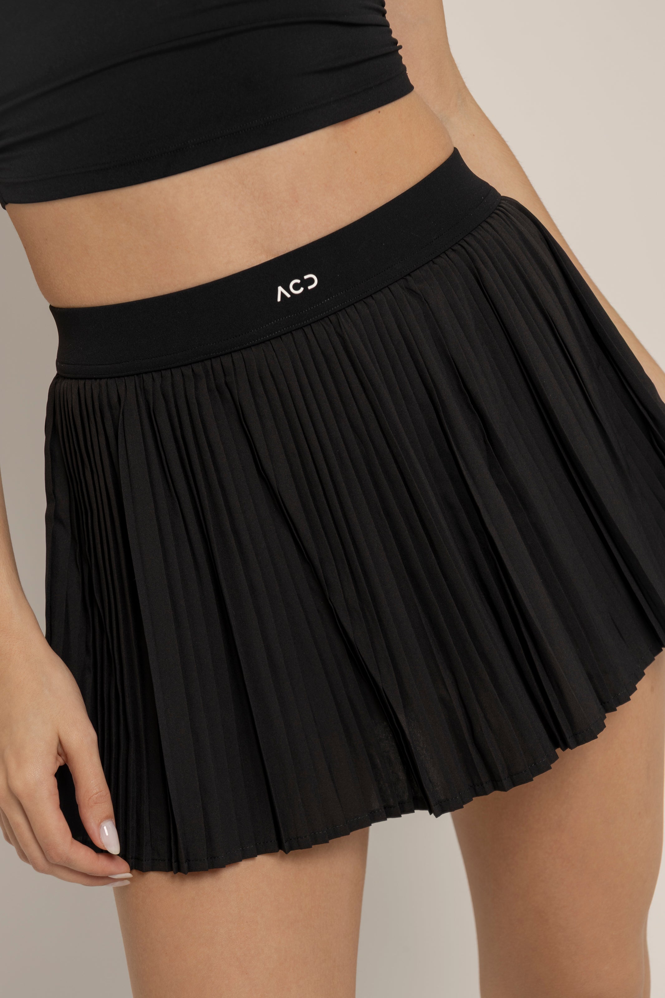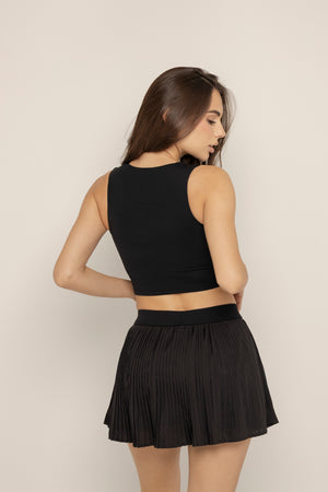 Falda deportiva de tiro alto con diseño plisado que combina movimiento, feminidad y funcionalidad. Incorpora short interno ajustado que brinda seguridad y soporte en cada movimiento, mientras su silueta ligera estiliza y eleva cualquier look active.