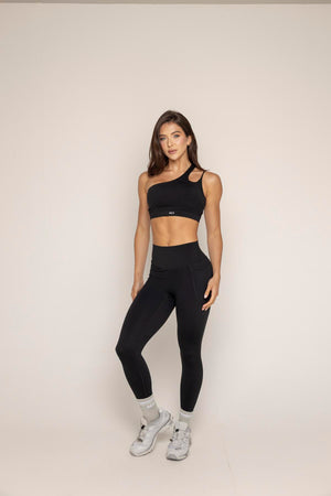 El Lunar Set está pensado para quienes buscan estilo y soporte en un solo conjunto. Su top de un hombro aporta un diseño distintivo que realza la silueta, mientras los leggings de tiro alto moldean y acompañan cada movimiento.