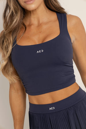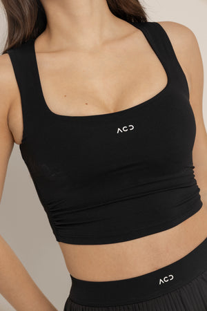 Top de silueta limpia con escote cuadrado que realza la figura y aporta un look más elevado. Su ajuste suave y estructurado se adapta al cuerpo brindando soporte y comodidad en cada movimiento. Ideal para entrenar o para elevar un outfit athleisure con una estética más sofisticada.