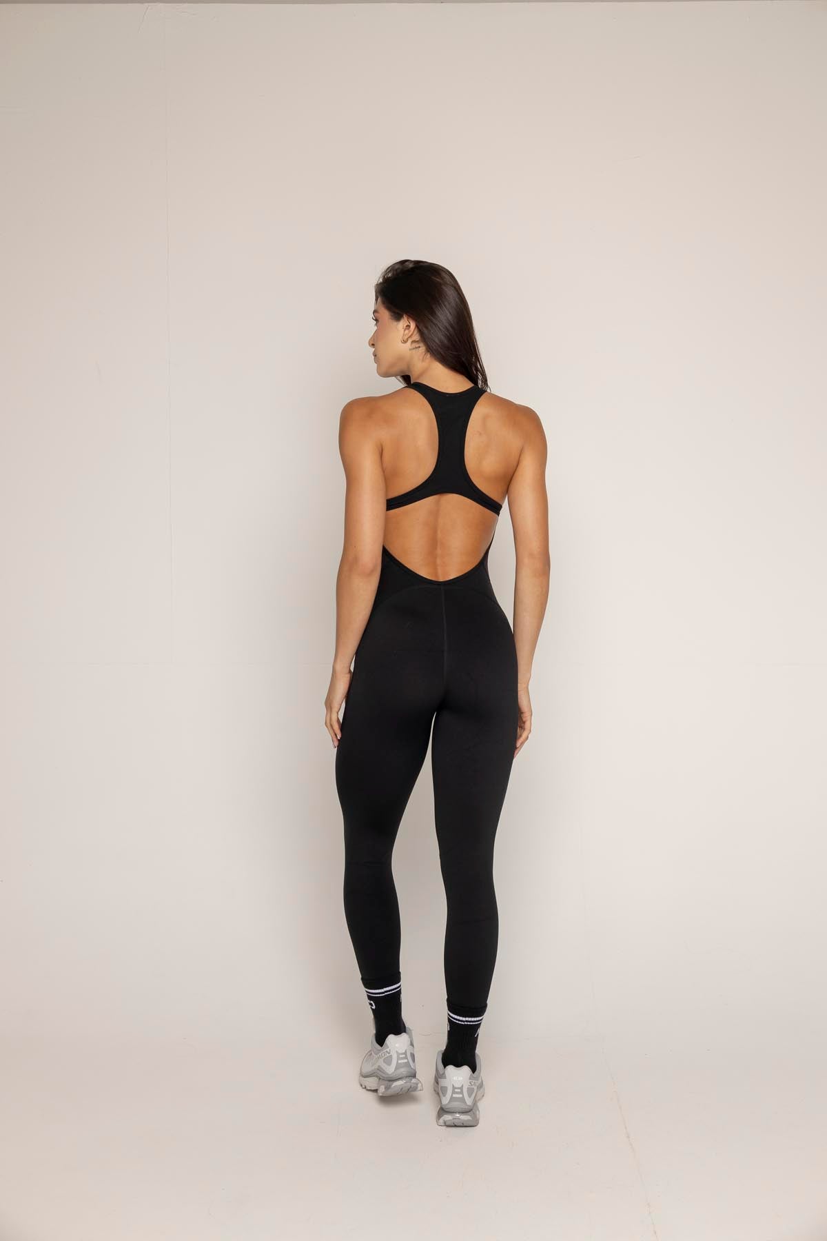 El Umbra Jumpsuit es la definición de fuerza y sofisticación en una sola pieza. Su diseño de cuerpo completo con escote redondo y espalda tipo racer con abertura central resalta la silueta de forma elegante y funcional.