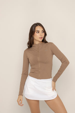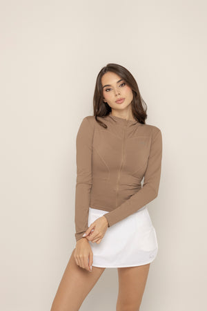 Ligera, versátil y diseñada para moverse contigo. Nuestra Jacket origen está confeccionada en una mezcla de nylon 78% y spandex 22%, lo que asegura suavidad al tacto, elasticidad y libertad en cada movimiento. Su silueta ajustada estiliza la figura sin sacrificar comodidad, convirtiéndola en la prenda ideal tanto para entrenar como para acompañar tus looks diarios.
